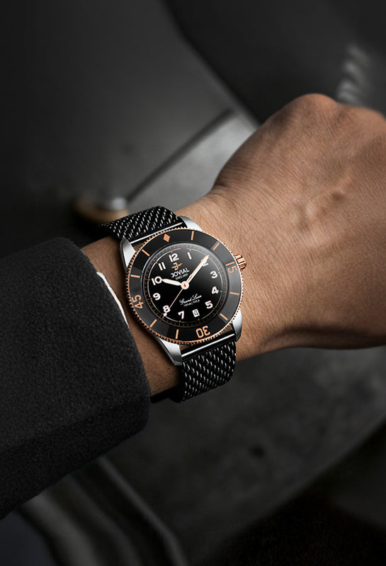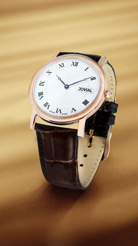 In the quiet little town of La Chaux-de-Fonds, in the Northern part of Switzerland and home of the Swiss tradition of quality and innovation in watch manufacturing! In spite of the Great Depression which followed the stock market crash of 1929, a small group of bold watch lovers and technicians stubbornly ignored the financial turmoil and proudly founded the JOVIAL watch company. The name was inspired by the feelings of joy and pleasure. His appellation was true; the JOVIAL watches bring joy and self-assurance to those who own them.