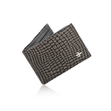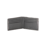 Black textured genuine leather bi-fold wallet with a distinctive pebble-grain finish. Features 8 card slots and 2 bill compartments, offering a refined style with everyday functionality. |
