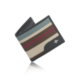 JW 7608821 GY – Leather & Fabric Bi-Fold Wallet with Striped Design